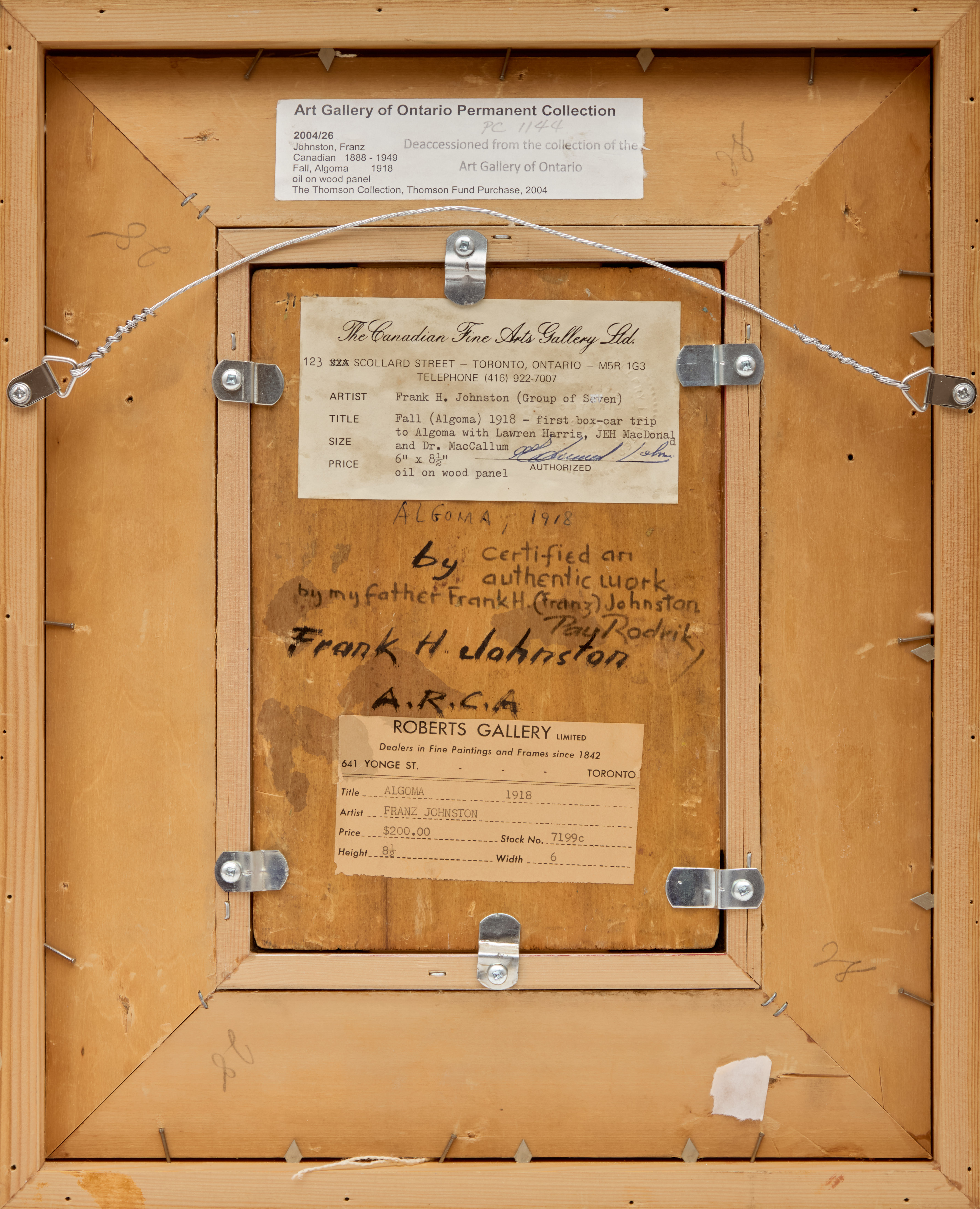 In the fall of 1918, Lawren Harris, J.E.H MacDonald, and Frank Johnston made their first painting trip to Algoma. Convinced by Harris, the Algoma Central Railway loaned the group a boxcar to serve as both lodgings and a mobile studio. The boxcar’s first location was at the Agawa River, in what is now the famous Agawa Canyon.