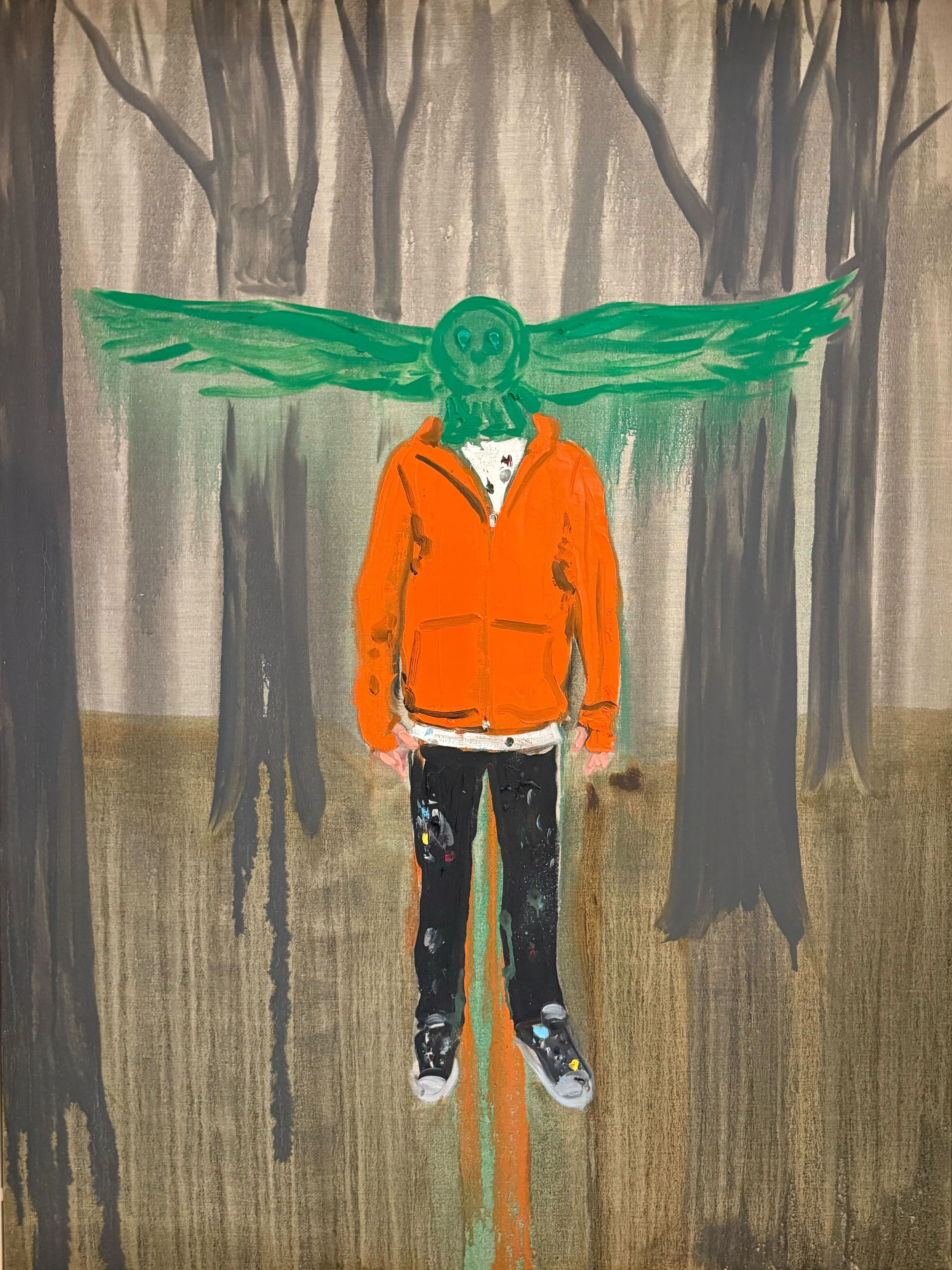 With an emphasis on demystifying the idea of terra nullius—the void, pristine, virgin land often idealized by historical Canadian painting and art history—the artist often incorporates contemporary figures and objects in a rugged environment emphasizing one’s place in the landscape. Dorland works in a variety of media, including neon pigments, spray paint and even inkjet technologies. Works often include hidden symbols and references to the relationship humans have on the landscape they inhabit. Graffiti, cars, toys and modern infrastructure populate Dorland’s landscapes, making a contemporary comment on the traditionally barren Canadian landscape throughout art history. In each work, strong formal elements of line, contrast, and colour figure prominently to create visually complex imagery. In doing this, the artist forms a dialogue with celebrated twentieth century Canadian painting technique rather than a rejection of tradition.